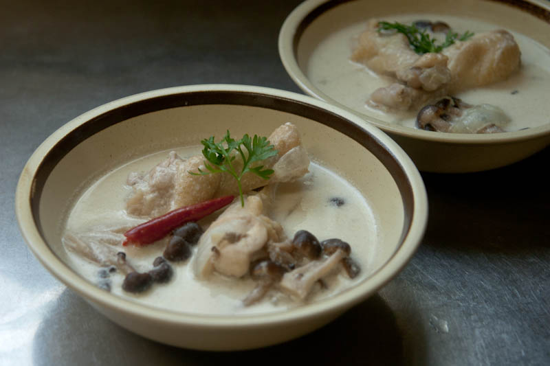 トムカーガイはトムヤムクンと並んでタイを代表するスープです。トムカーガイはトムヤムクンと同じハーブを使い、鶏肉とココナッツミルクで味付けをします。ハーブの持つ薬味成分がとけこみ、まろやかで甘く、鶏肉のだしに鷹の爪のピリ辛さがきいていて、タイの暑さでからからになった体にしみわたります。スープと言ってもご飯のおかずとして食べるものなので、日本のトン汁といったところでしょうか。
