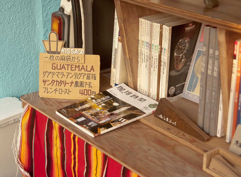 “Coffee Jikan” that is a magazine written in Japanese about coffee was issued on Dec. 26. There is a very interesting article in it. Roughly speaking, KISSACO who is a bag craftsman goes to a café and drinks a cup of a single origin coffee. After that, she makes a bag of the jute bag in which the coffee was put. In this issue of the magazine, idobata is chosen as the café. She came to our shop to drink Santa Catalina’s coffee in Guatemala.