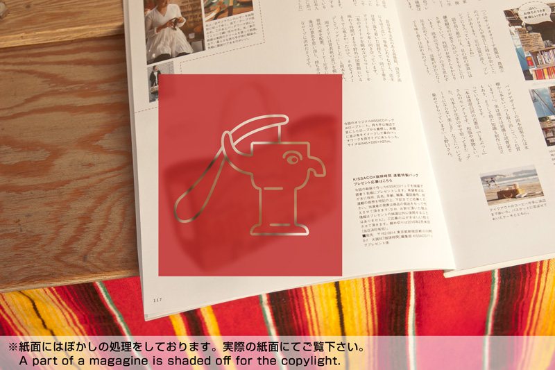 出来上がった雑誌の紙面を開いて、すぐにidobataでのひと時をKISSACOさんが作品作りのイマジネーションにしてくださったのが分かりました。KISSACOさんは私の入れた珈琲を飲みながら本にとても興味を持たれたようで、本棚を隅から隅まで眺めていました。その本棚のイメージがカバンの一部に引用されていました。